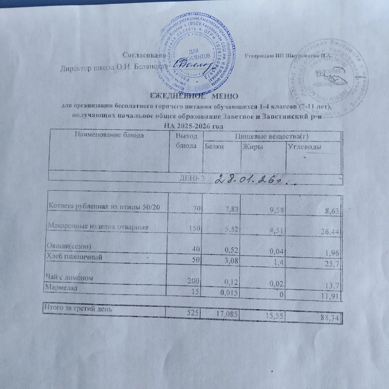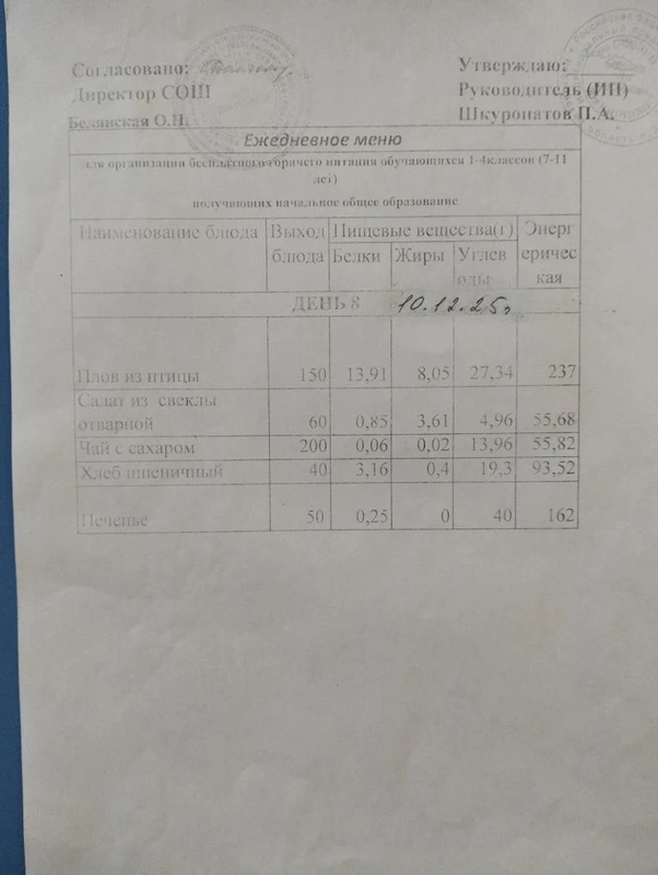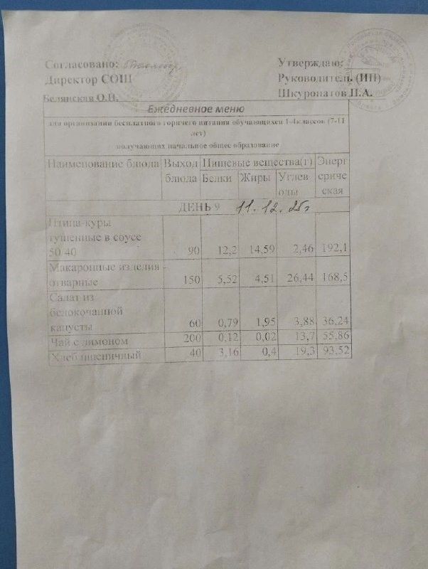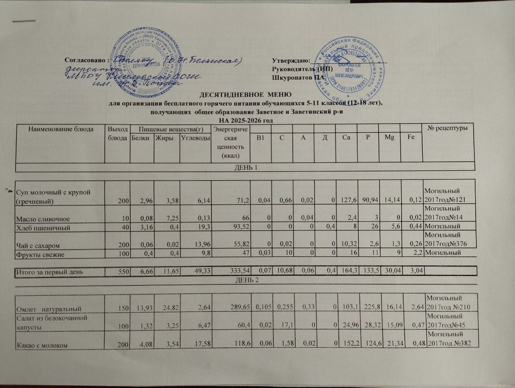 В МБОУ Киселевской СОШ им.Н.В.Попова -диетического меню НЕ ИМЕЕТСЯ