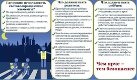 Сотрудники Госавтоинспекции призывают родителей контролировать  ношение ребенком световозвращающих элементов независимо от времени суток и времени года, особенно в непогоду. Вместе с этим дети-пешеходы должны знать и соблюдать правила безопасного поведения на дороге.