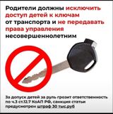 Уважаемые родители - владельцы автотранспорта! Обеспечьте недоступность ключей от автомобиля для несовершеннолетних детей!
